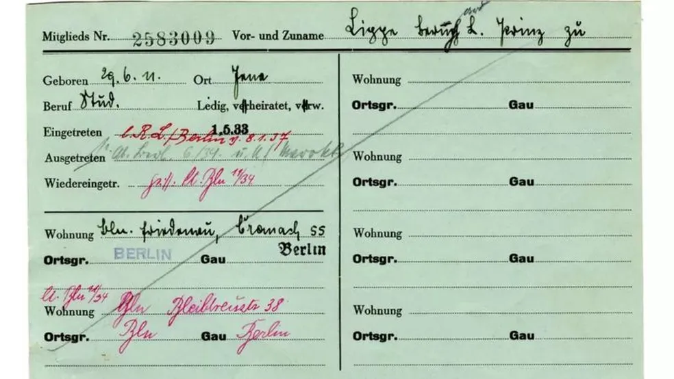 O cartão nazista que prova filiação de príncipe holandês ao partido de Hitler