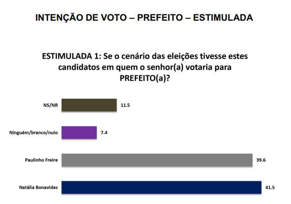 Na série de levantamentos realizado pelo Instituto Seta, pela primeira vez Natália Bonavides aparece numericamente à frente Paulinho Freire no segundo turno tanto na questão espontânea como também na pergunta estimulada.