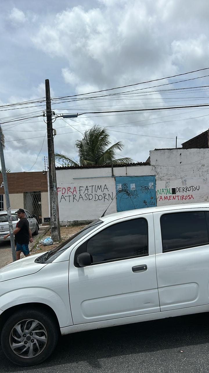 Natal segue sendo pichada com frases contra Fátima. O método é antigo e o praticante também. Os escritos têm a mesma letra.