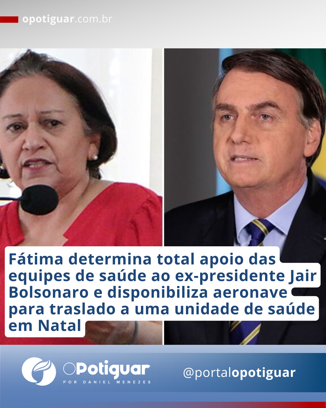 A governadora Fátima Bezerra determinou total empenho e providências às equipes das secretarias da Saúde e da Segurança Pública do RN em assistência ao ex-presidente da República Jair Messias Bolsonaro, que na manhã desta sexta-feira (11), deu entrada em uma unidade de saúde no interior do estado. Jair Bolsonaro cumpre agenda no Rio Grande do Norte. A Sesed mobilizou, de imediato, uma das aeronaves para traslado do ex-presidente a uma unidade de saúde, em Natal, e orientou os gestores da Secretaria de Saúde que adotassem todas as providências necessárias ao eventual atendimento.