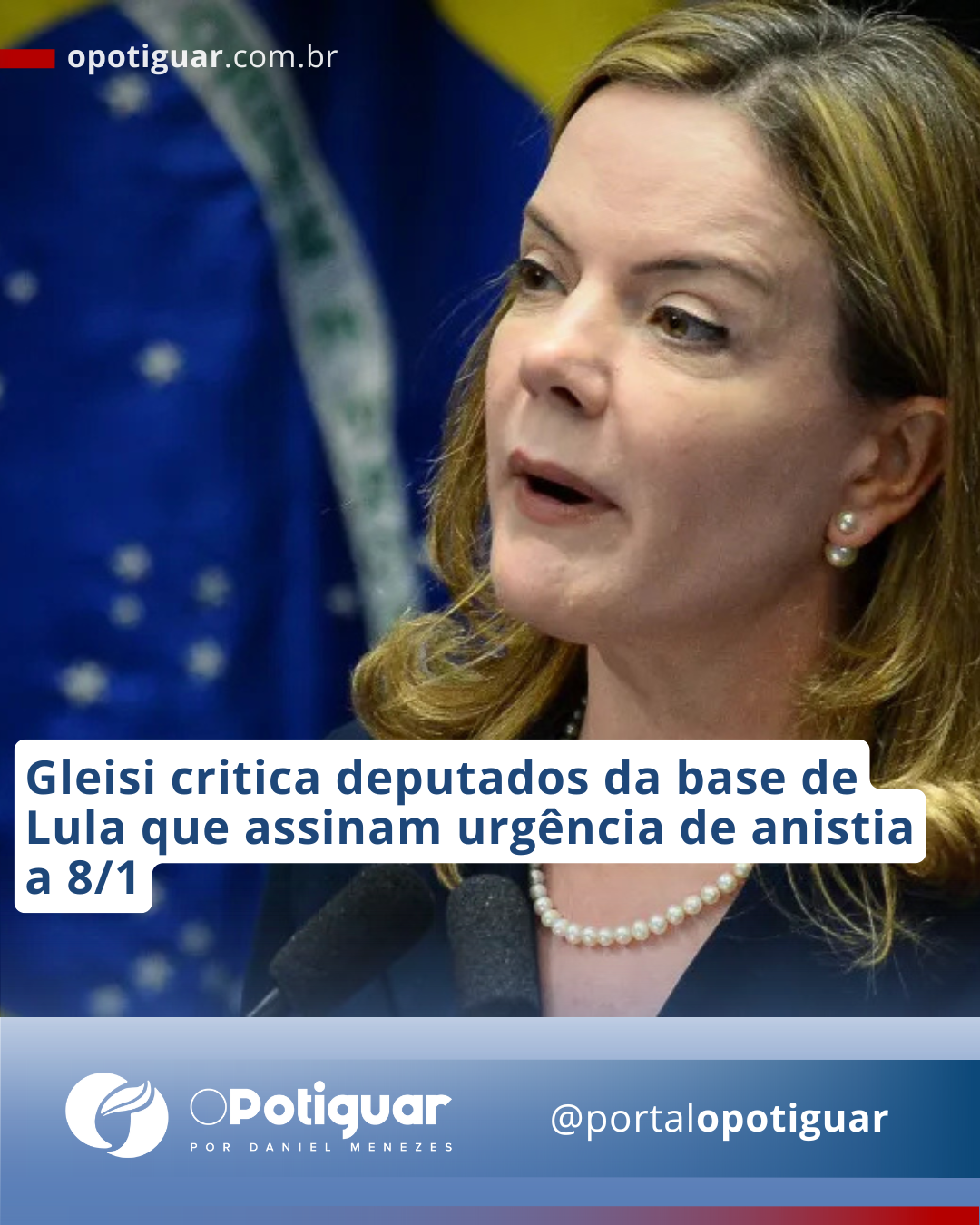 (FOLHAPRESS) - A ministra-chefe da Secretaria de Relações Institucionais, Gleisi Hoffmann (PT), criticou nesta quinta-feira (10) deputados que assinaram pedidos de urgência ao projeto que anistia os envolvidos nos ataques golpistas de 8 de janeiro.