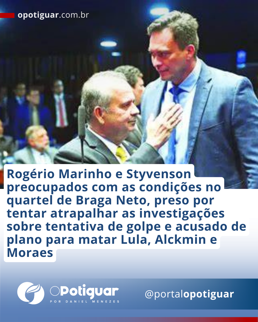 Rogério Marinho e Styvenson preocupados com as condições no quartel de Braga Neto, preso por tentar atrapalhar as investigações sobre tentativa de golpe e acusado de plano para matar Lula, Alckmin e Moraes