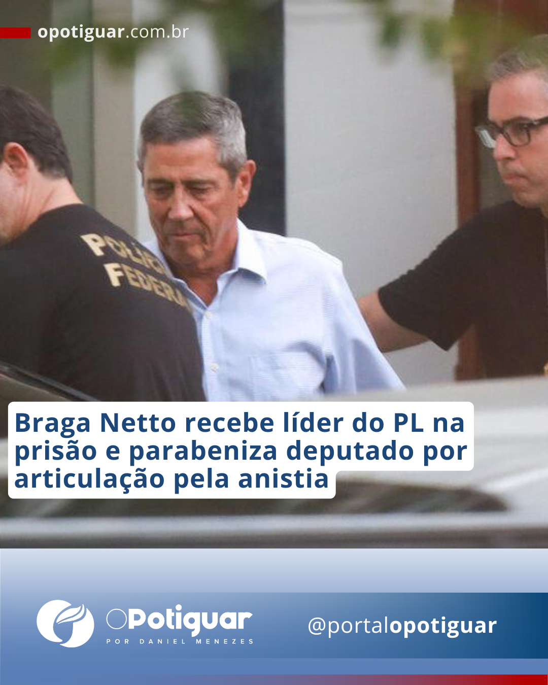 Do Estadão - O ex-ministro da Defesa general Walter Braga Netto, preso desde o dia 14 de dezembro por suposta obstrução de justiça no inquérito da tentativa de golpe de Estado, recebeu a visita do líder do PL na Câmara, Sóstenes Cavalcante (RJ). No encontro, Braga Netto comemorou a apresentação do requerimento de urgência do projeto de anistia aos condenados pelo 8 de Janeiro.