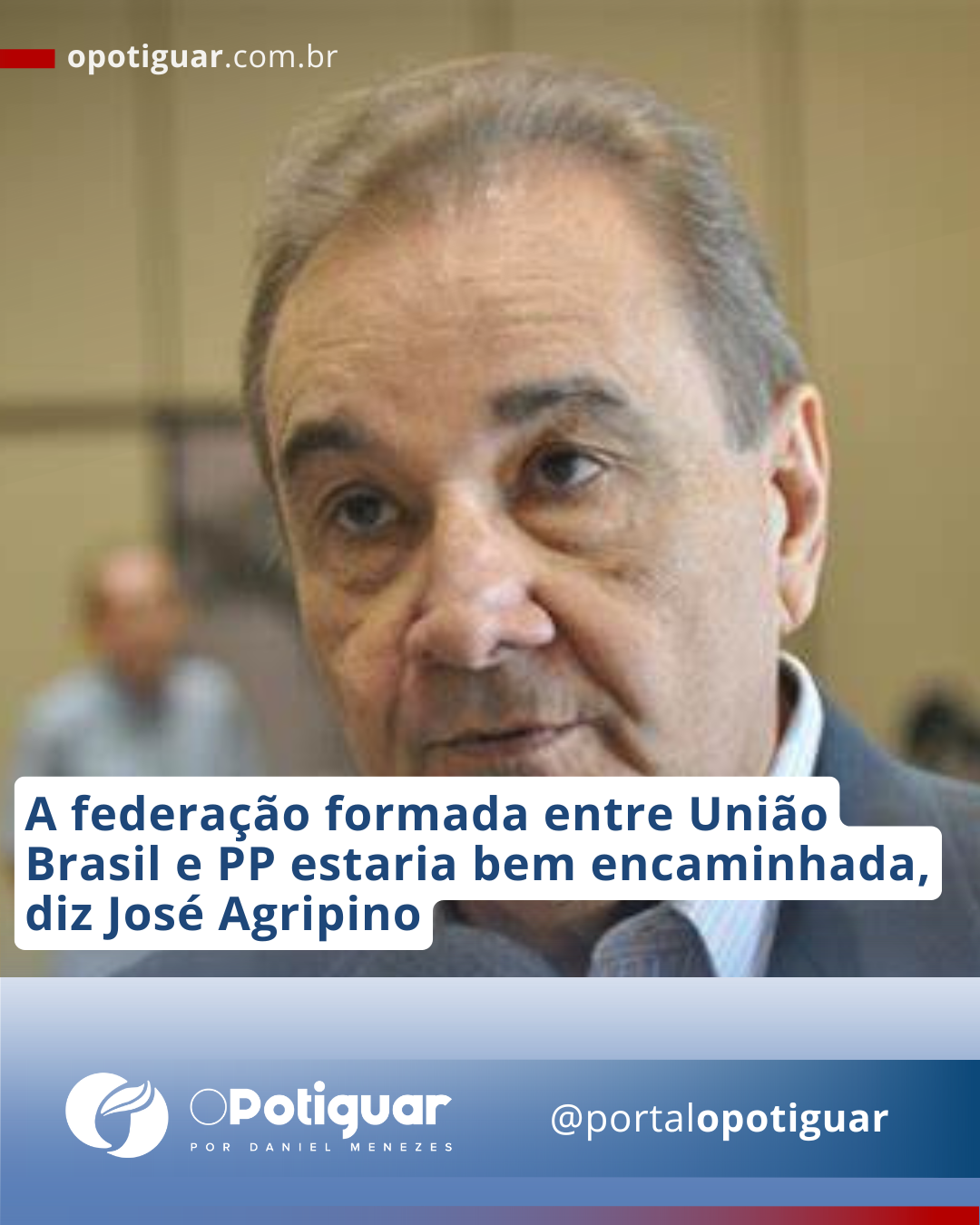 Em recente entrevista a sua tv tropical, o ex-senador José Agripino e presidente estadual do União Brasil afirmou que não é impossível que a federação PP e União Brasil já saia nos próximos dias. Ela já estaria bem encaminhada, segundo ele, que foi até Brasília participar das articulações.