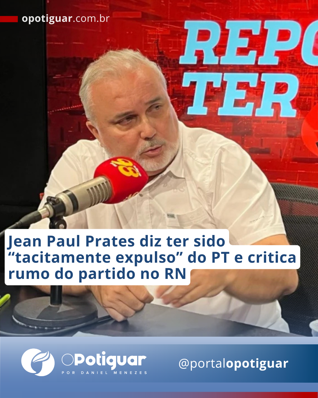 Da 98fm - O ex-senador e ex-presidente da Petrobras Jean Paul Prates declarou nesta quarta-feira (23) que considera ter sido “tacitamente expulso do PT”. Em entrevista à 98 FM, Jean disse que chegou a essa conclusão porque não tem sido consultado sobre as estratégias do partido para 2026, apesar de ter ocupado espaços políticos importantes.