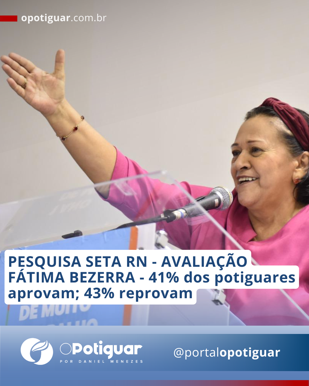 PESQUISA SETA RN - AVALIAÇÃO FÁTIMA BEZERRA - 41% dos potiguares aprovam; 43% reprovam