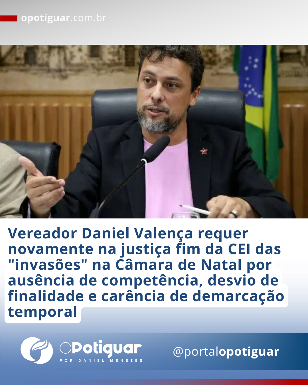 Vereador Daniel Valença requer novamente na justiça fim da CEI das "invasões" na Câmara de Natal por ausência de competência, desvio de finalidade e carência de demarcação temporal
