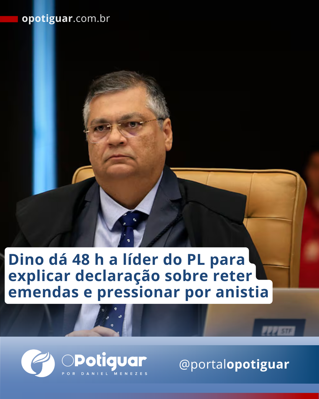 Do r7.com - O ministro Flávio Dino do STF (Supremo Tribunal Federal) deu 48 horas ao líder do PL na Câmara, deputado Sóstenes Cavalcante (PL-RJ), para explicar declarações dele de que o Partido Liberal teria traçado uma estratégia que envolveria o rompimento de um acordo entre o presidente da Câmara, Hugo Motta (Republicanos), e líderes partidários a respeito da repartição de emendas de comissão.