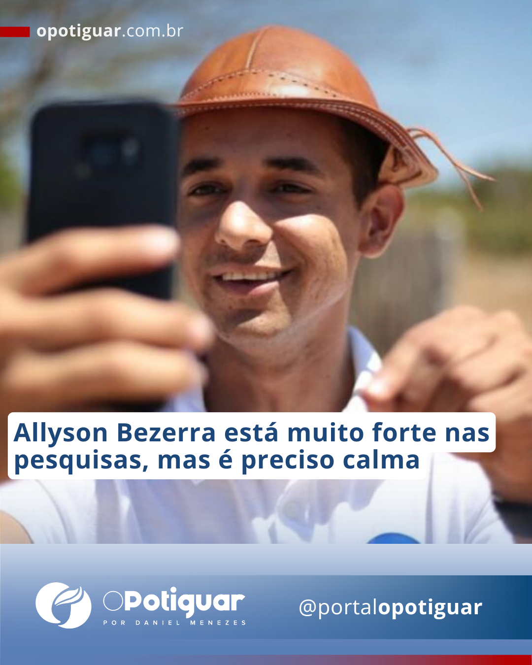 O prefeito de Mossoró Allyson Bezerra e dito por terceiros como pré-candidato ao governo em 2026 vem liderando a maioria das pesquisas com números expressivos. Ele está muito forte e sua capilarização pelas terras de poti sem nunca ter sido candidato a cargo majoritário estadual, um fenômeno ímpar, demonstra a força das redes sociais. Só que é preciso calma.