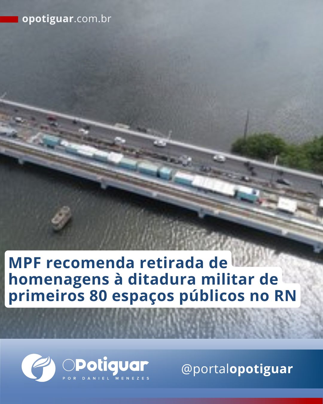 O Ministério Público Federal (MPF) recomendou ao governo do estado, à Assembleia Legislativa e às prefeituras e câmaras de 10 municípios do Rio Grande do Norte a retirada de homenagens feitas à ditadura militar e a colaboradores diretos do regime, que durou de 1964 a 1985. Pelo menos 80 ruas, praças e outros espaços públicos dessas cidades levam o nome de ex-ditadores ou fazem referência à data do golpe de 1964: 31 de março.