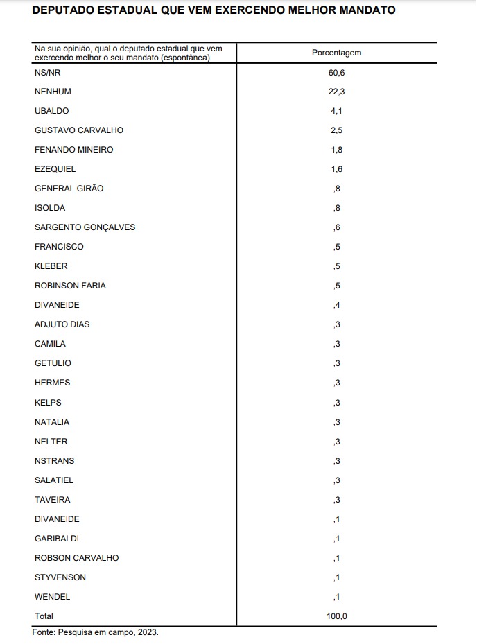 A pesquisa do Instituto Seta, divulgada pelo portal O Potiguar e pela rádio 98FM, nesta terça-feira (2), revela os deputados estaduais e federais que, de acordo com a amostra, vêm exercendo o melhor mandato, bem como a avaliação da atuação dos senadores do Rio Grande do Norte.