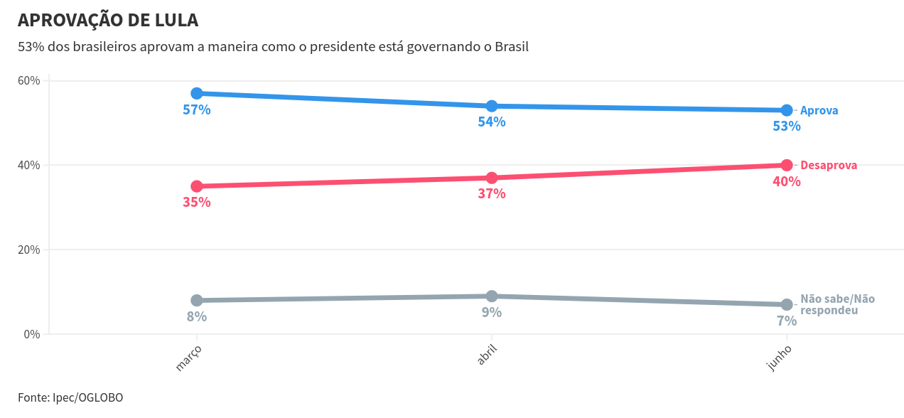 Ao contrário do que diz o Globo, a pesquisa Ipec sinaliza uma estabilidade benéfica para o governo Lula, após um semestre tumultuado que começou com o dia 8 de janeiro e terminou com os primeiros desacordos entre o executivo e o parlamento.
