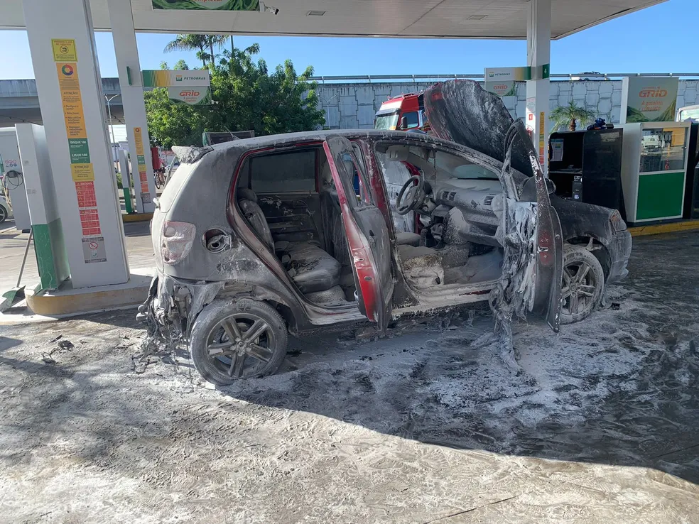 "O carro é à gasolina. Segundo informaram aqui no posto, parece que teve um curto no motor e começou daí o fogo. As portas travaram. A pane elétrica travou as portas", relatou.