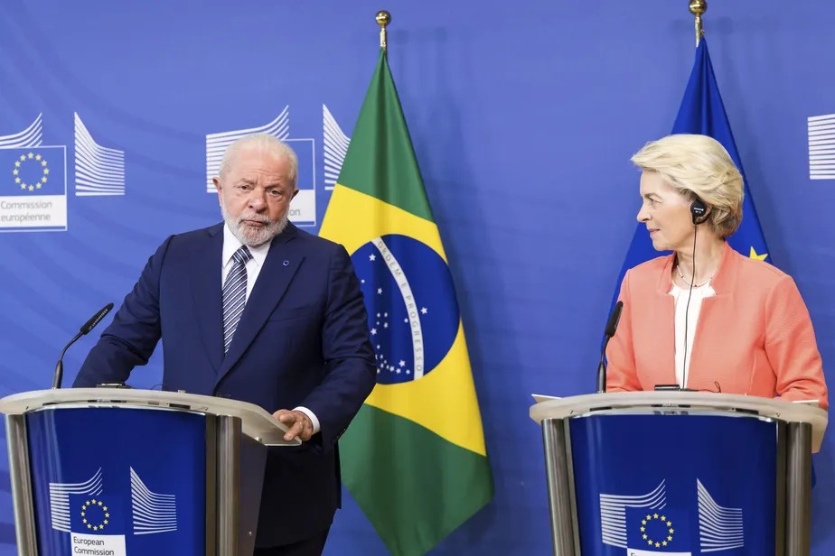 O presidente Luiz Inácio Lula da Silva (PT) se encontrou a presidente da Comissão Europeia, Ursula von der Leyen, nesta segunda-feira (17) em Bruxelas, na Bélgica.