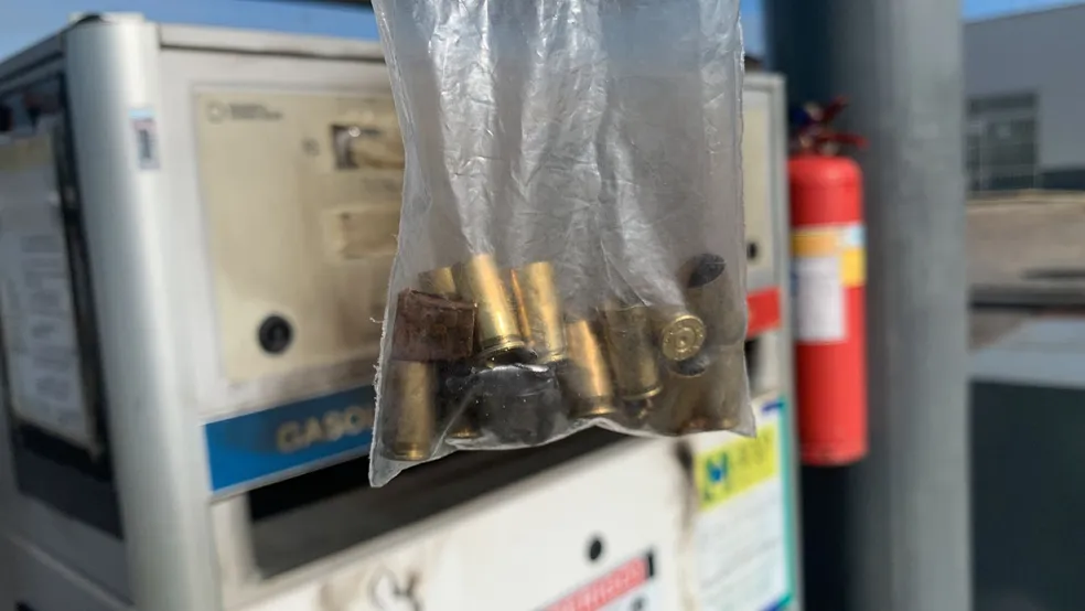 Balas recolhidas em local de crime no RN — Foto: Emerson Medeiros/Inter TV Cabugi