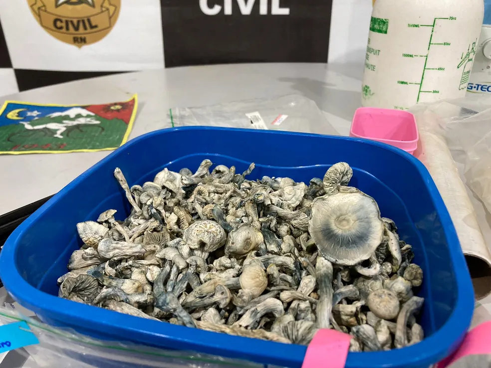 "São produtos conhecidos popularmente como cogumelos mágicos, por eles terem substâncias alucinógenas, como a psilocibina e a psilocina", afirmou o perito Clélio Soares, do Instituto Técnico-Científico de Perícia (Itep).