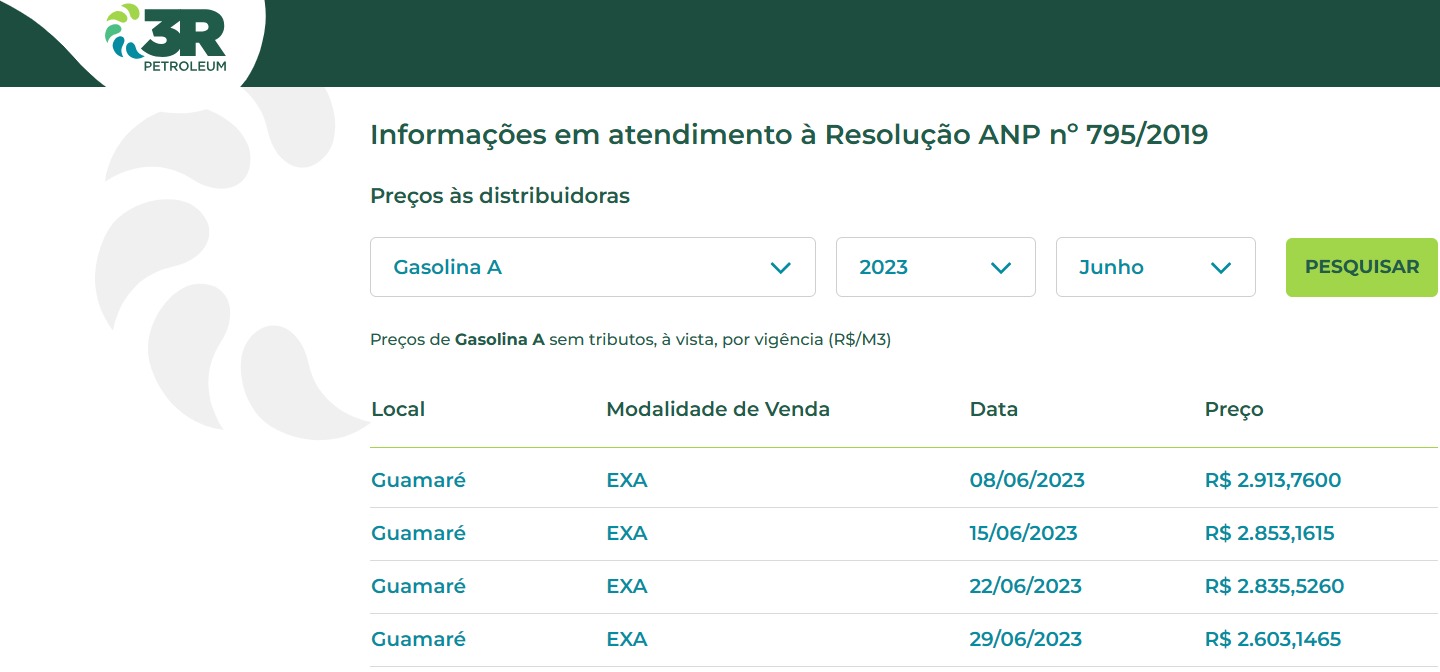 É, justamente, a partir da paridade internacional de preços que a 3R estabelece o preço cobrado pela sua produção de combustível.