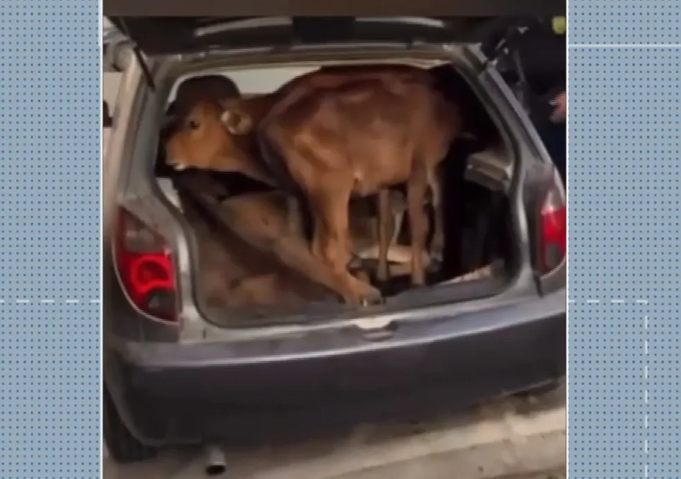 Dois homens foram presos após serem flagrados com quatro bezerros dentro de um carro modelo celta de duas portas, nesta segunda-feira (11) em Parnamirim, na Grande Natal. Segundo a Polícia Civil, eles tinham furtado os animais.