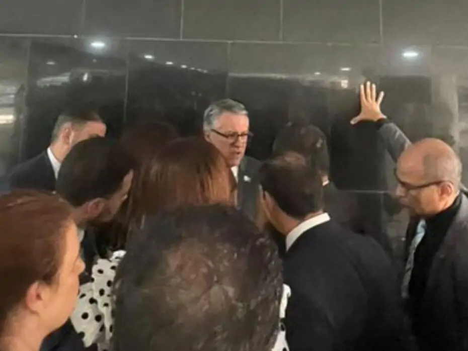 Após o evento, o ministro foi em direção ao elevador, mas foi parado pela bancada do partido para tratar sobre as negociações. Dentre os parlamentares, estavam o líder do PSD na Câmara, Antonio Brito (BA), e os deputados Pedro Paulo (RJ) e Laura Carneiro (RJ).
