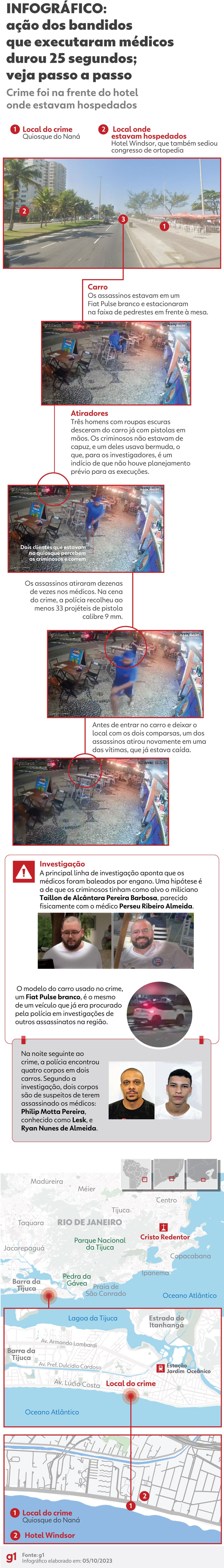 O Instituto Médico Legal (IML) do Rio de Janeiro concluiu a perícia nos corpos dos três médicos ortopedistas assassinados na madrugada de quinta-feira (5), em um quiosque, na orla da Barra da Tijuca, na Zona Oeste da cidade.