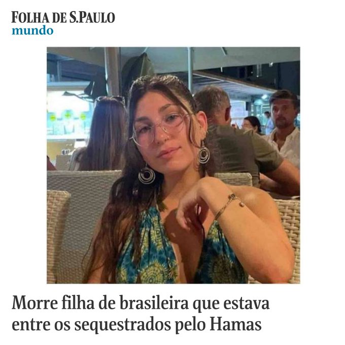Morreu a filha de brasileira que estava entre os sequestrados pelo Hamas. Tchelet Fishbein, 18, feita refém em kibutz, também foi ferida por foguete quando criança. Ela é uma entre as milhares de vítimas do ataque do grupo terrorista já citado.