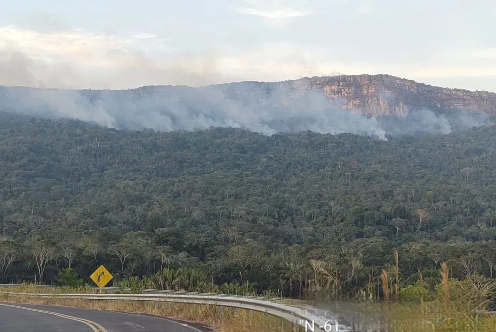 Imagens mostram pontos turísticos da serra do Tepequém -- inclusive o platô, um dos pontos mais altos da região -- cobertos por fumaças que saem de dentro da vegetação das montanhas. Os registros também mostram a Defesa Civil de Amajari e brigadistas voluntários trabalhando para controlar as chamas.