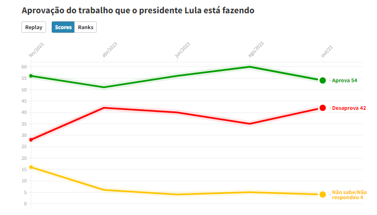 Aprovação do trabalho de Lula em outubro/2023, pelo voto no 2º turno: