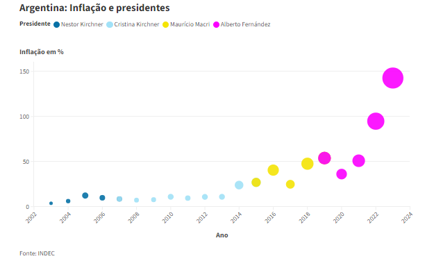 Todos os presidentes argentinos deixaram o cargo com inflação maior que na posse nos últimos 20 anos