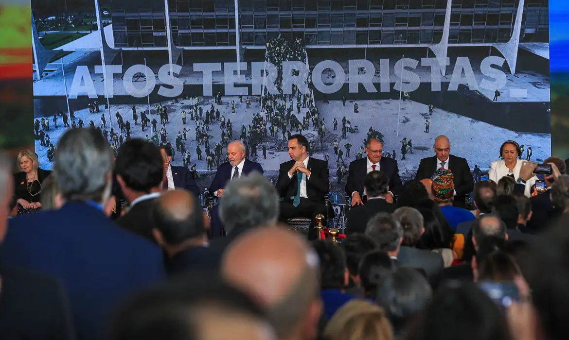 O evento no Congresso tem a presença dos presidentes da República, Luiz Inácio Lula da Silva; do Congresso Nacional, Rodrigo Pacheco (PSD-MG), e do Supremo Tribunal Federal (STF), Luís Roberto Barroso, além de parlamentares, ministros, ex-ministros e representantes da sociedade civil.