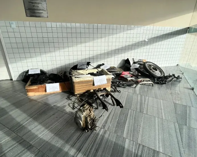 Os PMs encontraram rodas de motocicletas, lanternas de carros, som automotivos, retrovisores e outros materiais. Uma bicicleta e uma motocicleta também foram localizadas no local e apreendidas pela Polícia Militar.