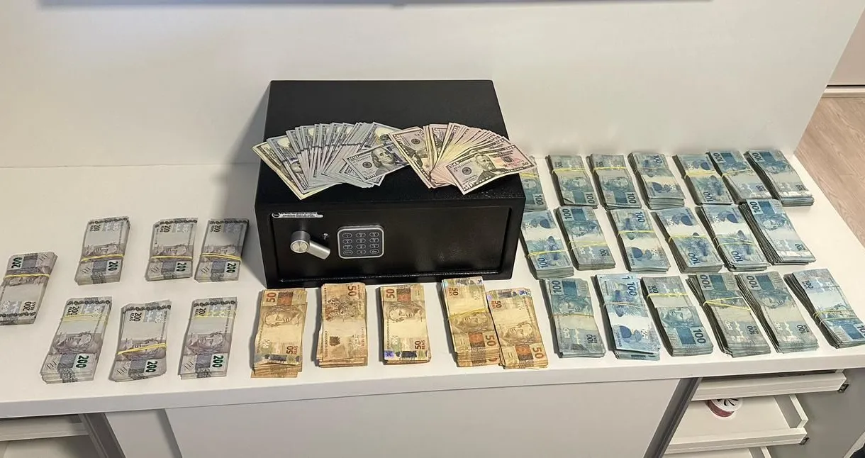Também são cumpridos mandados em 21 residências e 10 prédios comerciais. As equipes apreenderam armas, munições, relógios de luxo e dinheiro em espécie.