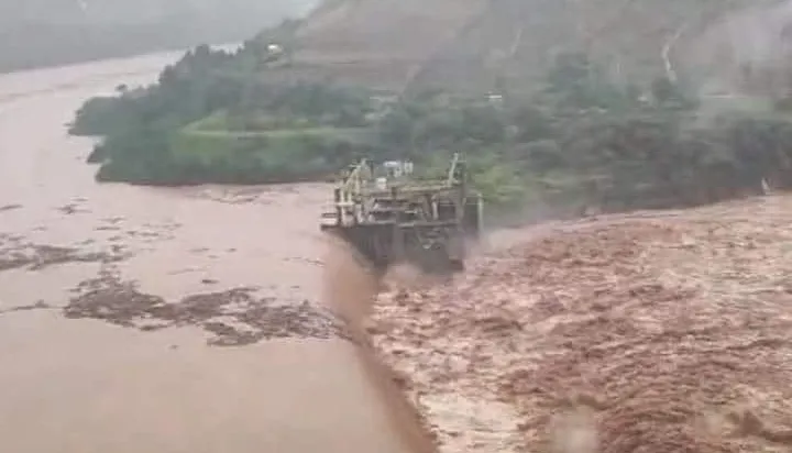 Imagem da barragem da Usina 14 de julho impactada pelas chuvas. Estrutura rompeu parcialmente no Rio Grande do Sul / Reprodução/Redes Sociais