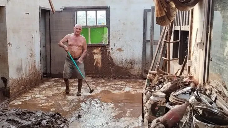 Depois que a água abaixou, o morador de Lajeado voltou para ver o que sobrou do imóvel nessa terceira enchente. “Vou ter que abandonar a casa onde eu casei, criei três filhos meus, quatro filhos da minha esposa, perdi ela aqui. Em novembro peguei mais um evento climático, peguei dois temporais, com dois destelhamentos da casa. E agora veio a ruína total”.