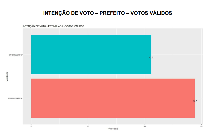 Contratado para veicular pesquisa no sábado pré-votação (26/10) de segundo turno, o Instituto Seta prognosticou a vitória de Emília Corrêa por 57,7% a 42,3%, o que se confirmou no domingo (27).