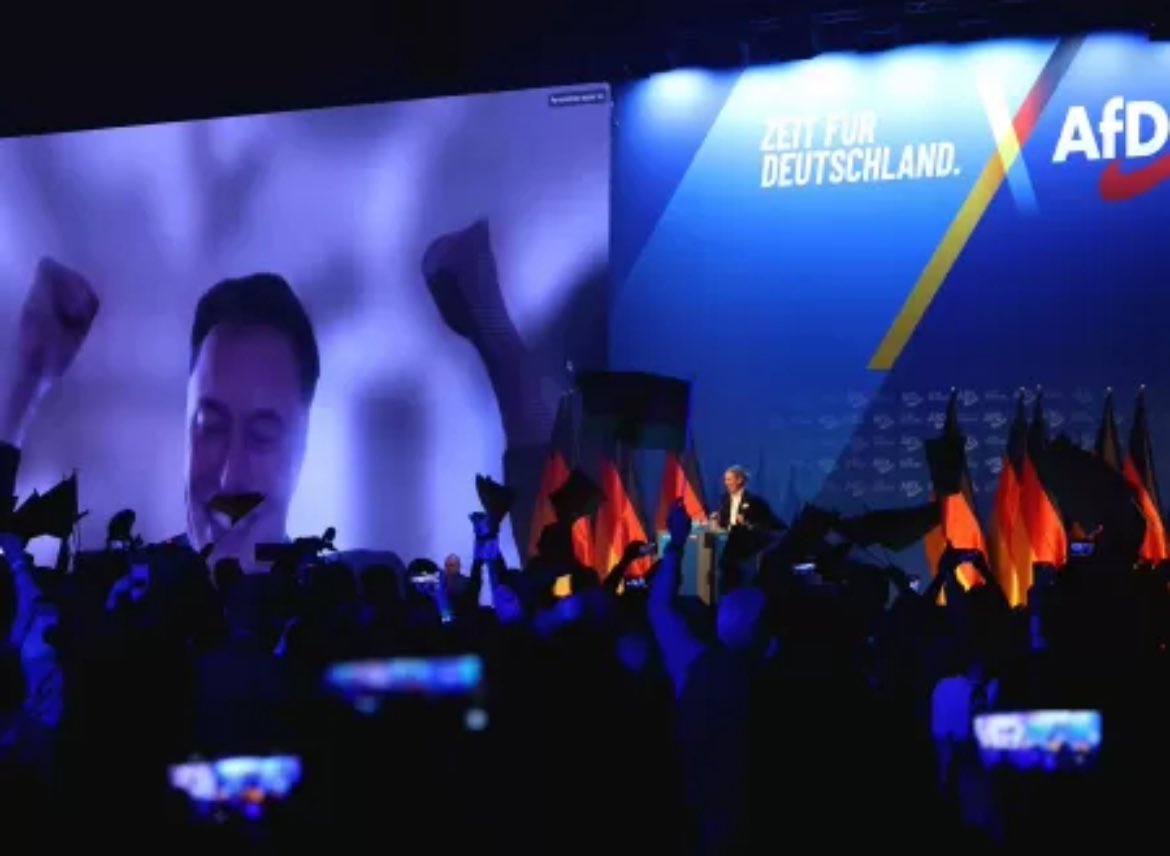 O bilionário e secretário de Estado de Trump Elon Musk demonstrou apoio, por videoconferência, ao partido de extrema direita alemão. O partido é investigado por ligações com grupos neonazistas alemães. O nazismo é ideologia proibida na Alemanha. (AFP)