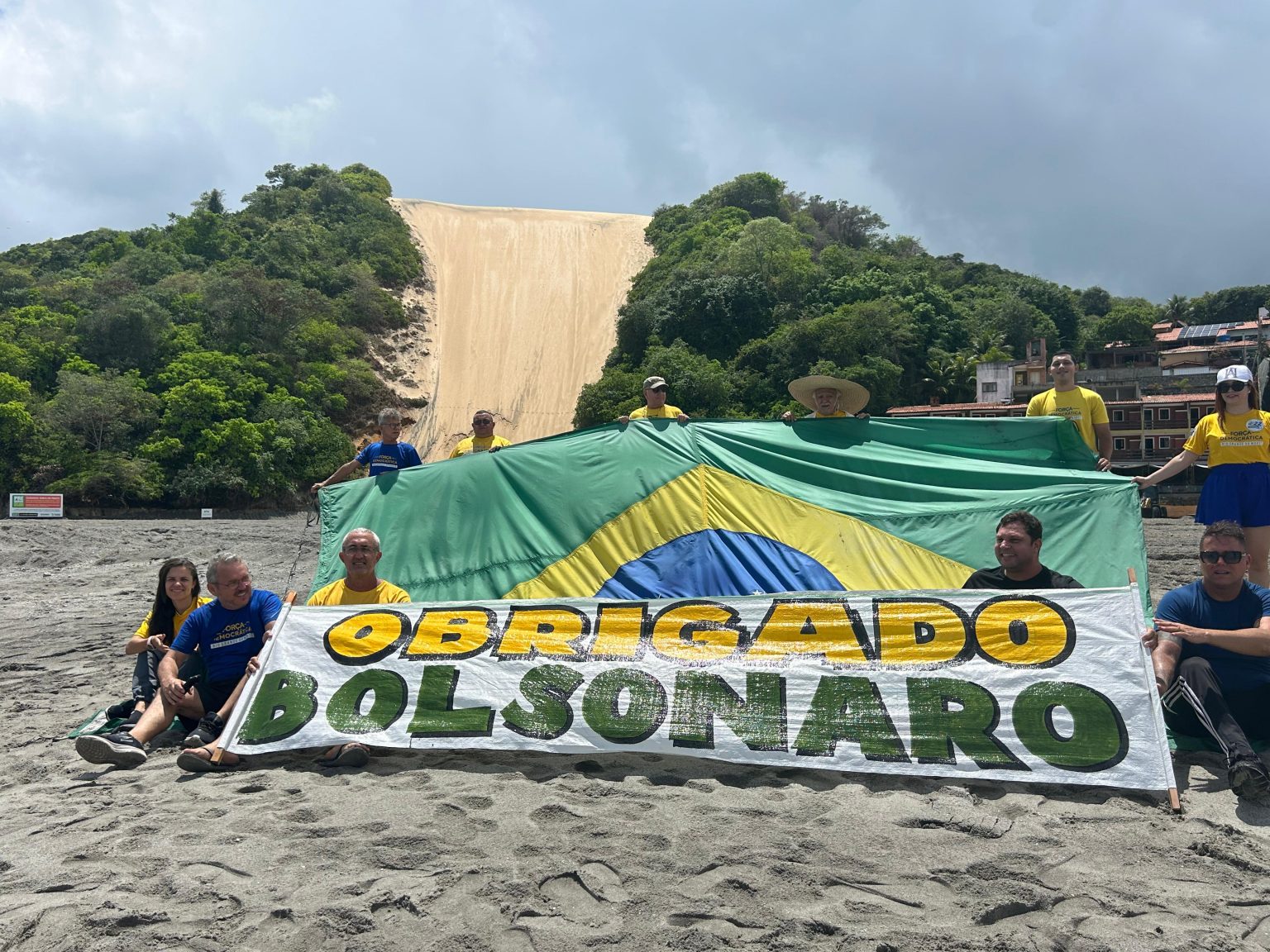 Um grupo que se nomeia "força democrática", mas que apoia aqueles tentaram um golpe de estado em 2022 conforme a Polícia Federal, fez um protesto hoje na praia de Ponta Negra.