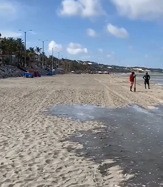 Um vídeo chocante rapidamente se espalhou hoje nas redes sociais. O Instagram do @OPotiguar também postou. Nele, a água do mar de ponta negra, já com a engorda concluída e sem chuva alguma, se aproxima das pedras do calçadão, isto é, já engolindo quase toda a areia da orla engordada.