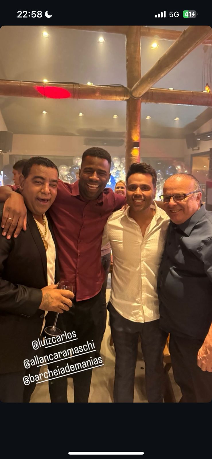 Revista Quem - Globo - 06/02/2025 - O bar Cheia de Manias, localizado na zona sul de São Paulo, foi palco de uma celebração especial na quarta-feira (4): o aniversário de Luiz Carlos, vocalista do Raça Negra, e do seu empresário, Allan Caramaschi. A celebração reuniu amigos, familiares e convidados especiais para celebrar a vida dos famosos.