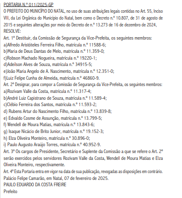 Está no diário oficial de hoje, 10 de Fevereiro. A vice prefeita de Natal Joana Guerra passará a contar com uma comissão de segurança de nove membros. Antes eram seis. Será que o cargo é tão perigoso assim?