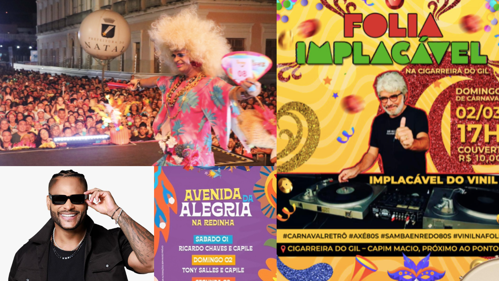 🥁 O polo Zona Norte (Nélio Dias) traz Dirrocha & Márcia Felipe & Gabriel de Pádua & Banda VIP. Na ZN, tem também trio elétrico com Capilé & Tony Salles!