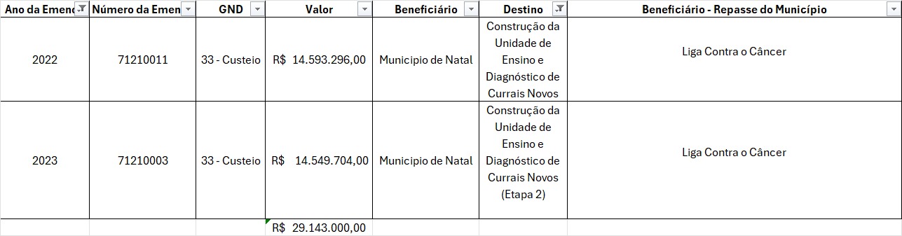 Conforme prometido na conta do blog no instagram, trago os dados concernentes ao emprego de uma das emendas do senador Styvenson Valentim para custeio de saúde da Liga Contra o Câncer, que o senador alega que foi para a construção do Hospital da Liga no Seridó, em especial, a unidade de ensino e diagnóstico de Currais Novos. Serei objetivo e suscinto, pois o assunto não era nem mais para sofrer contestações, já que a nota da Liga a respeito do assunto já é definitiva. Porém, como ainda há a tentativa de confundir a população, cabe mostrar maiores detalhes.