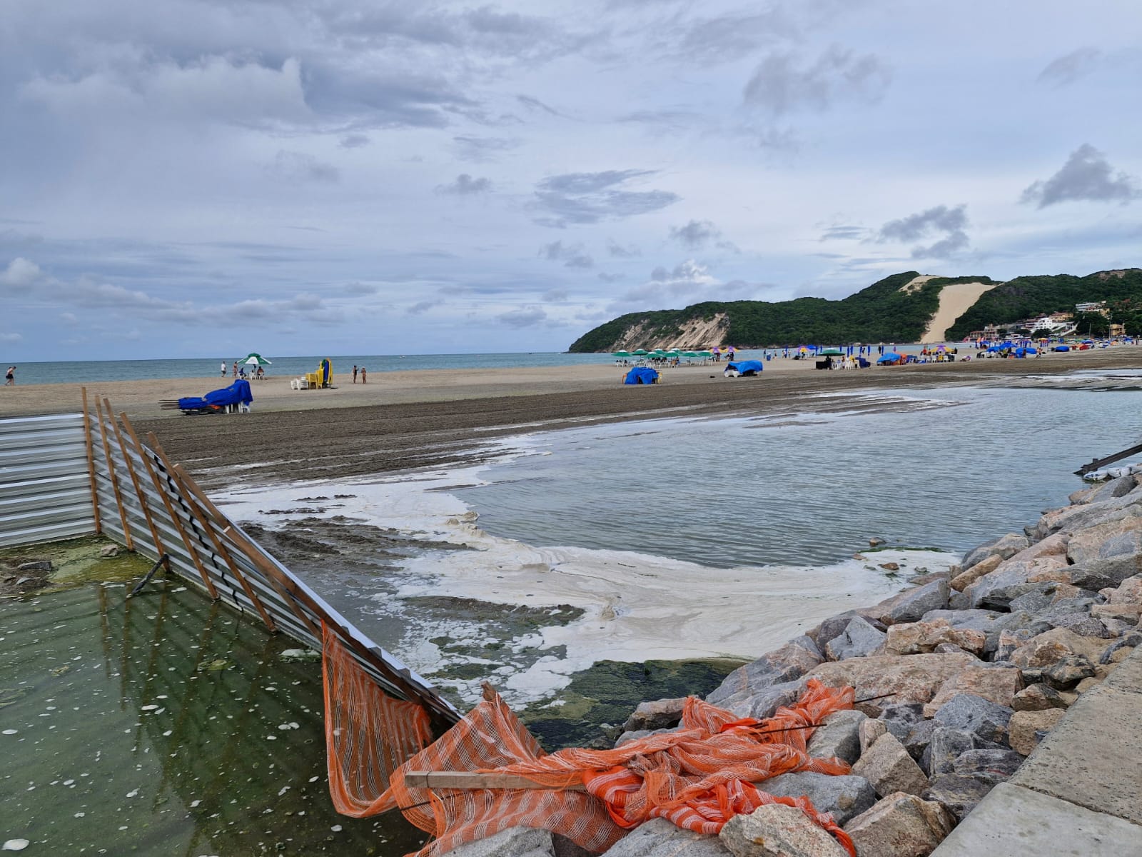 Apesar dos tapumes e água alagada em seu entorno, a Prefeitura do Natal considera a drenagem da praia de Ponta Negra concluída.