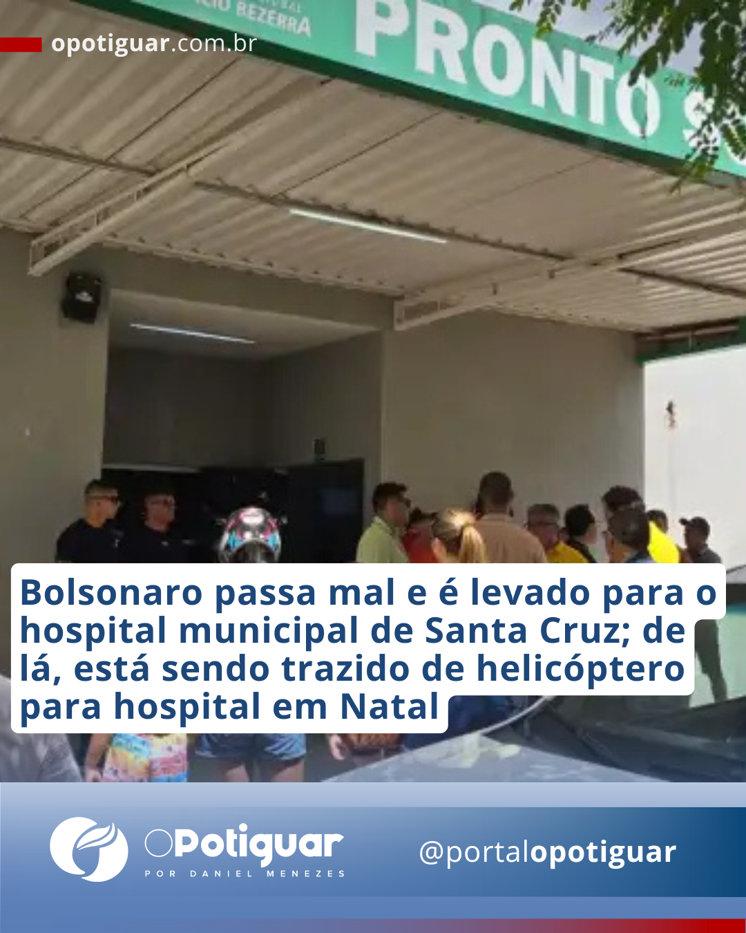 Bolsonaro passa mal e é levado para o hospital municipal de Santa Cruz; de lá, está sendo trazido de helicóptero para hospital em Natal