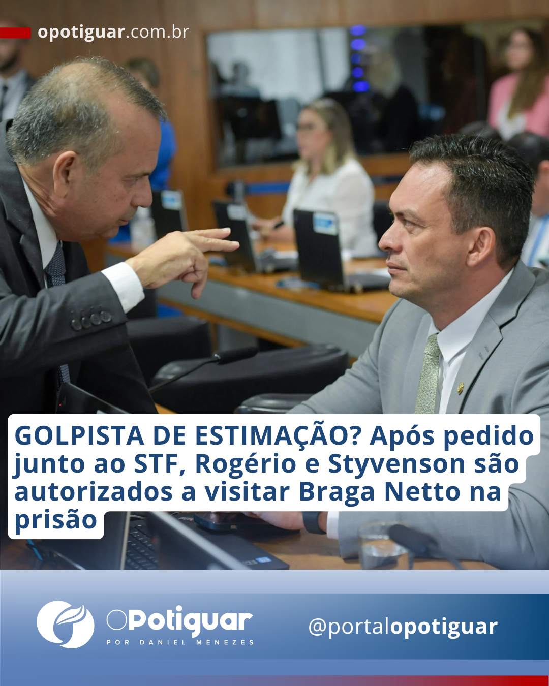 Os senadores Rogério Marinho (PL) e Styvenson Valentim (PSDB) foram autorizados a visitar o general e ex-ministro Walter Braga Netto na prisão. A medida foi concedida pelo ministro Alexandre de Moraes, do Supremo Tribunal Federal (STF), que autorizou a visita de 23 senadores e de um deputado federal.