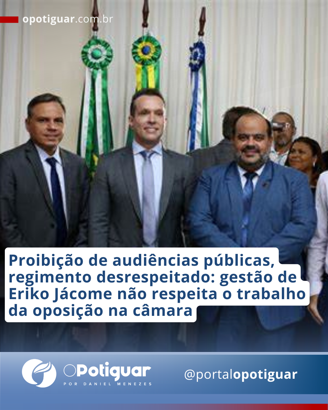 A gestão de Eriko Jácome como presidente da câmara tem sido marcada pelo desrespeito as regras do jogo e alicerçada no ataque a parte significativa dos natalenses que votaram para a existência de uma oposição - tanto no executivo, como também no legislativo local.