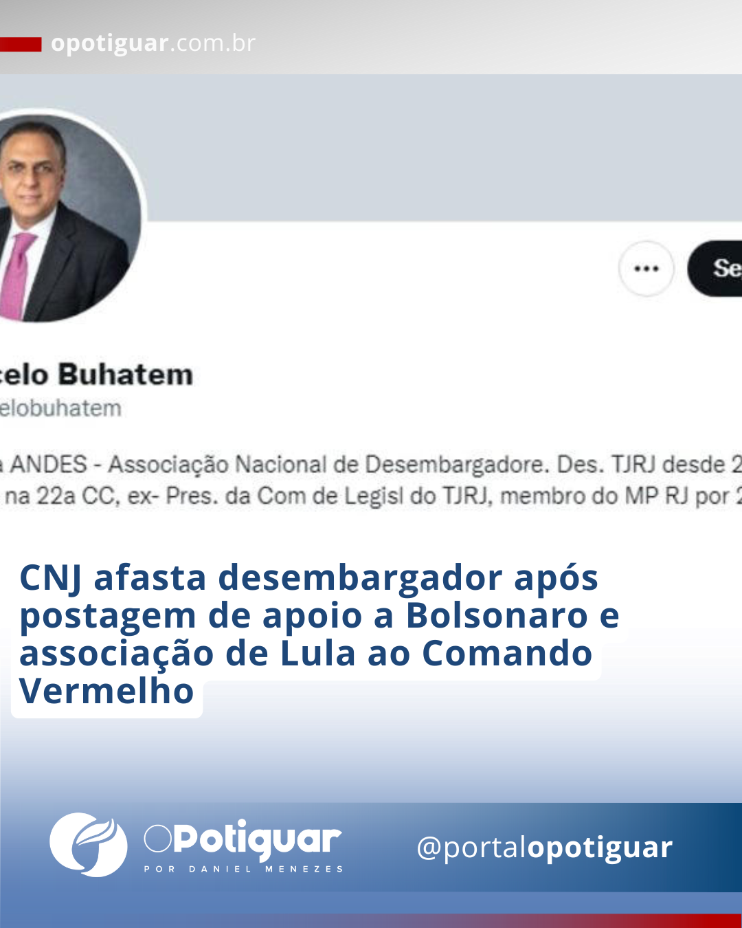 Do Estadão - O Plenário do Conselho Nacional de Justiça (CNJ) decidiu afastar por 60 dias o desembargador Marcelo Lima Buhatem, do Tribunal de Justiça do Rio de Janeiro (TJ-RJ), por publicação de mensagens de cunho político-partidário em redes sociais.