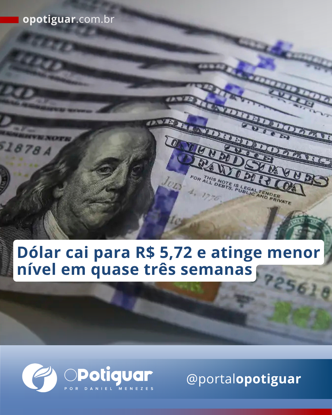 Dólar cai para R$ 5,72 e atinge menor nível em quase três semanas