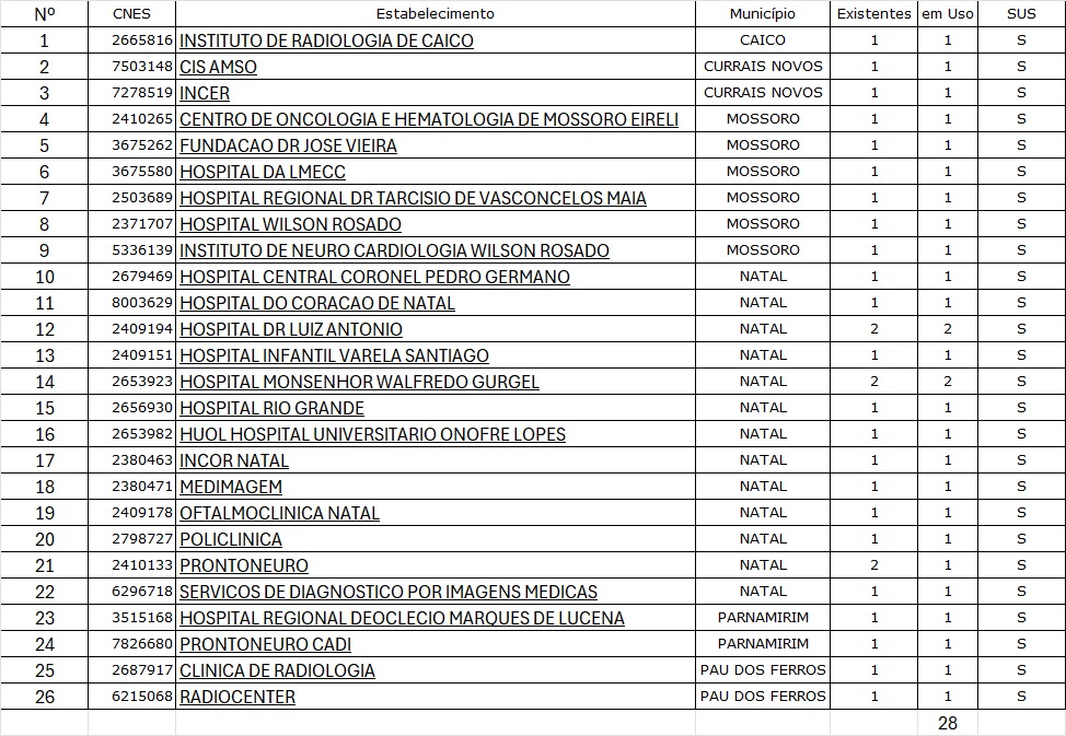 O RN foi de 26 para 39 tomógrafos de 2019 à 2025