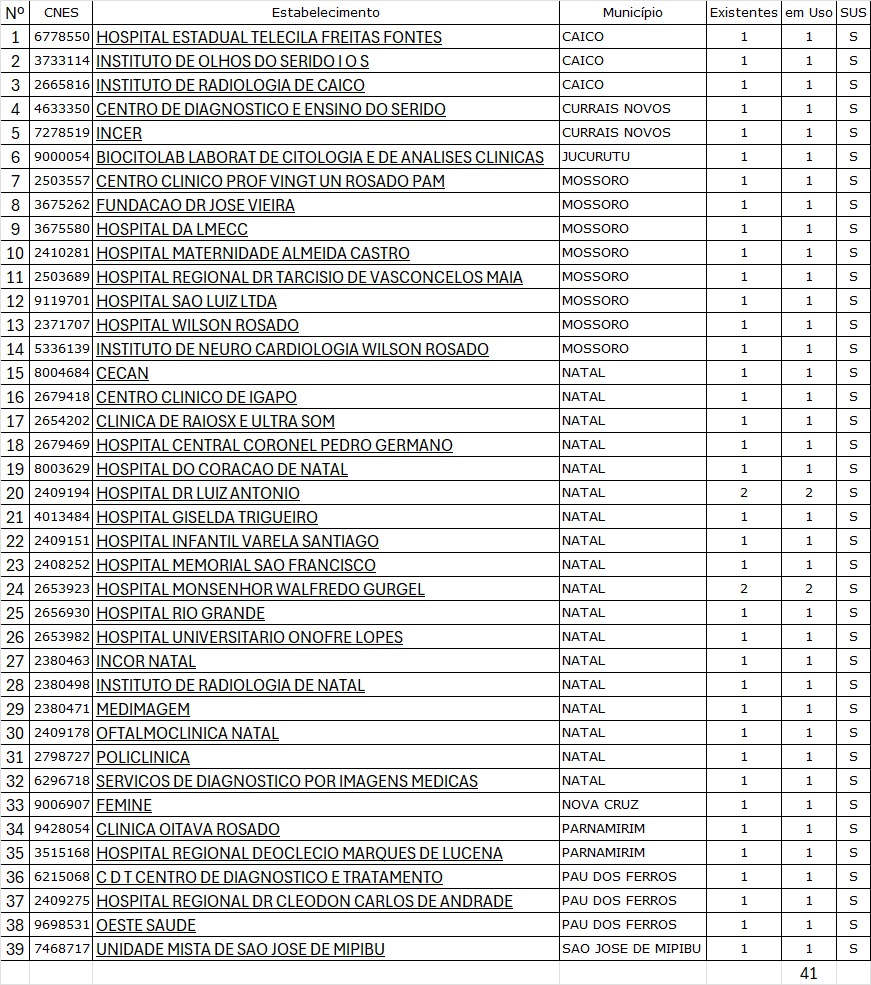 Falando em tomógrafo, máquina extremamente cara e capaz de fazer exames imprescindíveis para a saúde da população, o Rio Grande do Norte tinha 26 em 2019 e passou para 39 em utilização no Sistema Único de Saúde.