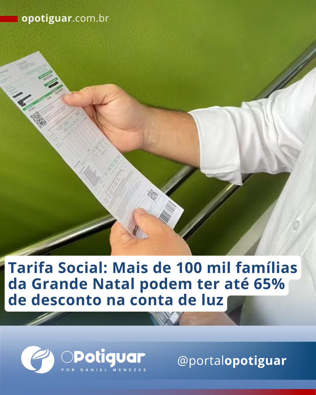 Tarifa Social: Mais de 100 mil famílias da Grande Natal podem ter até 65% de desconto na conta de luz